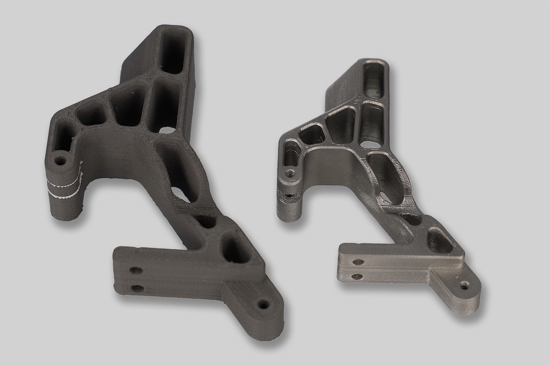 Extrusion: bei dieser Technologie werden Filamente mit einem auf Extrusion basierenden Verfahren verschmolzen. Beim FDM 3D-Druck mit Kunststoffen können die Bauteile nach dem Druck direkt verwendet, oder nachbearbeitet werden. Beim FDM-Metall-3D-Druck entstehen sogenannte "Grünteile" beim Druck. Anschliessend wird das Bindemittel entfernt, und die Metallteile werden gesintert.